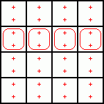 | Quincunx (nová verze) Od GeForce 4 byla změněna pozice vzorků.